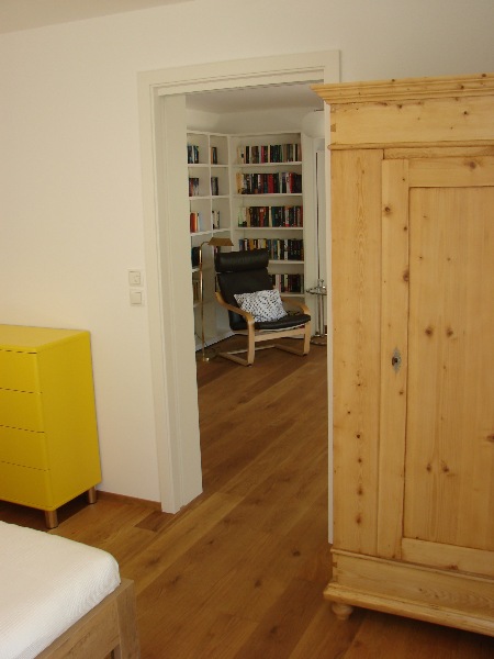 Moderne Einrichtung mit ländlichem Ambiente.Schiebetüren verbinden raumsparend.